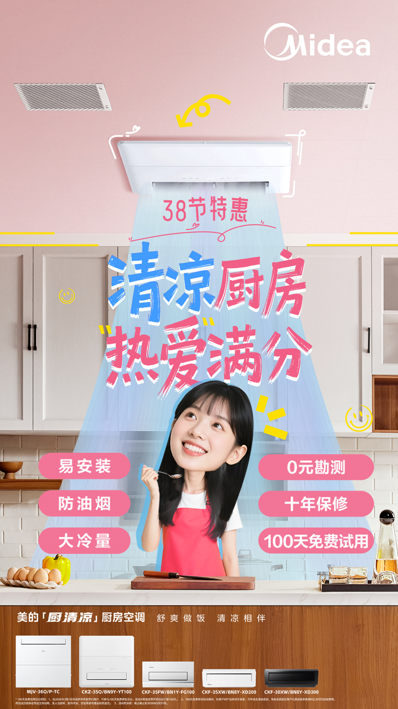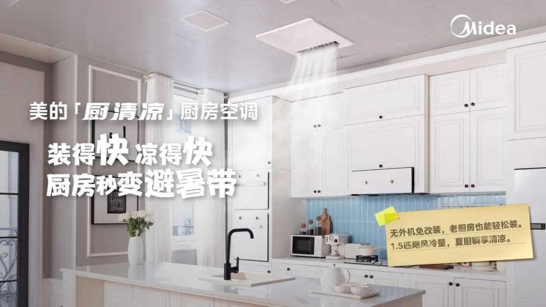 随着厨房的门一起开启的,还有更多聚会。打通厨房之后,舒雨家里可以用来聚餐的空间也变得更大。除了朋友,逢年过节时,她也越来越习惯邀请亲戚、同事一起来家里做客。从厨房里端出来的,不只是一桌子菜,也是一整晚的热闹和回忆。 “对我来说,厨房乃至这个房子的意义变得不太一样了。”舒雨形容,“让我知道家不是只能像蜗牛壳一样,一个人扛着责任,而是可以分享,也可以分担。更多人参与进来的时候,这个空间才不再是个空壳。我很向往让自己的房子成为朋友之间情感的载体。” 根据美国厨卫行业协会的数据,近年来住宅的整体面积在缩减,但76%的行业专家预计未,来三年厨房的面积将持续扩大。人们不再满足于一个只能做饭的空间,而是希望在这里停留、社交、与自己相处。厨房变大的背后,是生活重心的回归。 告别高温,厨房可以成为新生活的开场,美的在2023年推出美的「厨清凉」厨房空调,如今已涵盖多种机型:嵌入式、吸顶式、无外机嵌入式,不仅能快速降温,而且防油烟、易安装,覆盖不同家庭厨房的安装需求和场景。▲ 美的「厨清凉」厨房空调面向不同场景和需求的厨房空调产品(图/受访者提供)