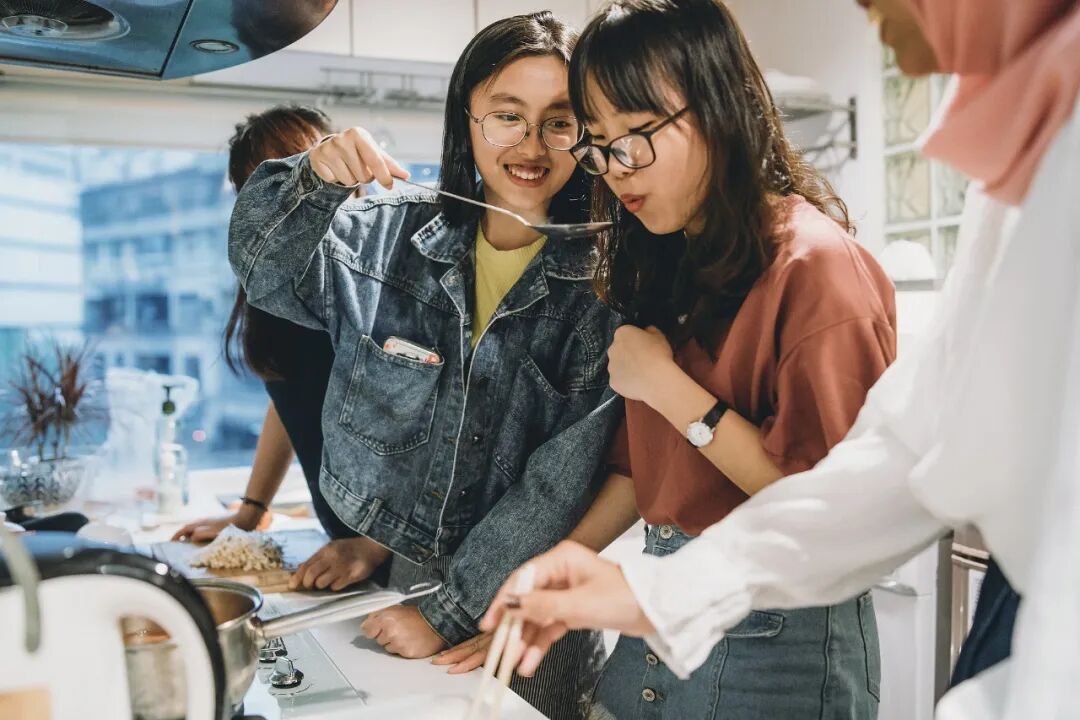 “希望在她长大后,记忆里的厨房都是快乐的,而不是别人的辛苦和牺牲。”李朵表示,“不希望孩子背负着愧疚感长大。” 当厨房不再让人困扰,从生活中“隐形”,人们便可以从容地变回小孩,容纳一切笨拙、失误和突发奇想,厨房也从做饭的地方,变成一起“玩”的游乐场。 3 在厨房里,让情感自然流动 在中国,一顿饭常常是一段关系的重要节点。当厨房能够凝聚人与人的关系,它的角色也从“后方”走到了生活的舞台中央,为人们创造更多机会和可能性。 舒雨和大学的几位室友在毕业十多年后一直保持着联系,“群聊里没有一天是不聊天的。”毕业至今,6月15日一直是她们的“宿舍纪念日”。每年宿舍日前后,分散在省内不同地方的她们都会找机会约在一个地方聚餐。 2023年,舒雨买了房子,地点距离其他人都不算很远,聚会点便顺理成章改到她家。其他朋友带来食材,舒雨则负责下厨做饭。 第一次来到舒雨家时,大家看到熟悉的东西立马笑了:花砖、八角柜、从各地淘来的杯碟……“她们说一看就知道是我‘亲生’的家,因为很复古。”舒雨说,“我平时的衣服或者配饰也是这样的风格。” 每年,朋友聚会时正值最热的时候。两三年下来,舒雨和朋友们慢慢发现,做饭这件事无形中压缩了许多相处的时间:每次朋友们来到,想帮忙一起打下手,但舒雨的待客之道也很“复古”,“我作为主人,总不能让别人来做客还闷出一身汗那么难受。” 于是,做饭的这段时间里,就变成了舒雨的“独角戏”,朋友们虽然时不时在门外想拉她参与到聊天当中,但隔着门,加上厨房的燥热,她把更多注意力都放在做饭上。等到所有菜都上桌,她又得开始思考洗碗和擦厨房的事情,“人在心不在。” 这种情况被朋友们看在眼里。2025年,她们一起给舒雨送来了一份礼物:美的厨房空调,并且告诉她,“当作是这几年的饭票。” “她们在用她们的语言和行动让我放心。”舒雨解释。 师傅上门安装的时候,舒雨特意录像发到了群里。朋友们选择的是无外机的美的厨房空调,不用破坏装修,不用考虑外机位,一天就能安装完。轻薄便捷的主机背后,却有蜂鸟压缩机、自研美弗0号冷媒、高静压离心风道等设计,持续为舒雨提供清凉的陪伴。▲ 一众朋友在厨房一起做饭。(图/视觉中国)